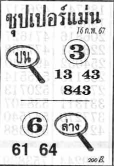 หวยซุปเปอร์แม่น งวดประจำวันที่ 16 กุมภาพันธ์ 2567