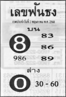 หวยเลขฟันธง งวดประจำวันที่ 02 พฤษภาคม 2568